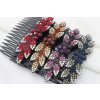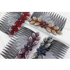 Hrebienkov do vlasov vyrobený z čierneho plastu, ktorý ma na vrchnej časti umiestnené kvety vykladané kamienkami v štyroch farebných prevedeniach : fialová, červená, tmavo modrá, hnedá. Vhodné na akúkoľvek udalosť či slávnostnú alebo na bežný deň je to len na Vašej predstavivosti.