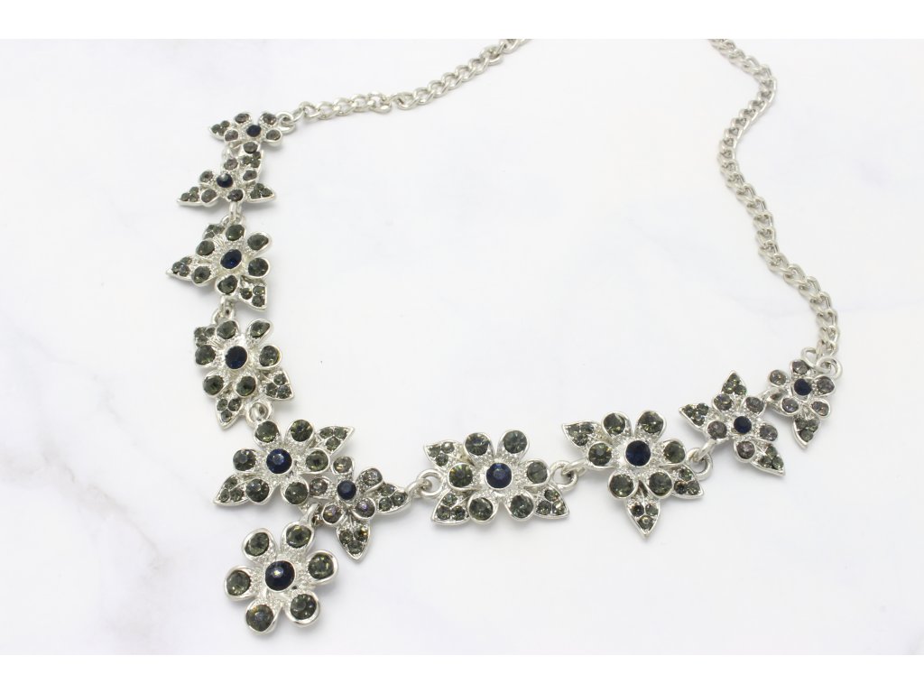 Nádherný retiazkový náhrdelník vykladaný kamienkami v striebornom prevedení v dvoch farebných prevedeniach : sivo fialovej alebo sivo tmavomodré. Náhrdelník môžete zapnúť kdekoľvek na retiazke a tak podľa potreby nastaviť dĺžku náhrdelníka. Náhrdelník je ideálny na spoločenské udalosti : svadby, plesy, párty, stužkové . . .