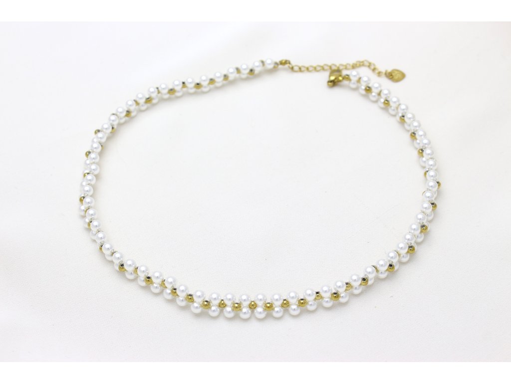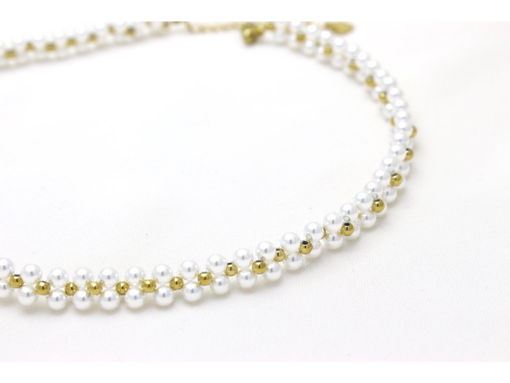 Výnimočný dizajn, ktorý si zamiluješ. Náhrdelník je tvorený precízne navlečenými 4 mm perličkami doplnenými o 2 mm koráliky z chirurgickej ocele v zlatej farbe. Práve kombinácia týchto dvoch prvkov vytvára jedinečný vzhľad, ktorý sa hodí na bežný deň, do práce aj na špeciálne príležitosti.
