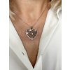 Jemná retiazka s výrazným príveskom v tvare vzorovaného srdca ozdobené čírymi brúsenými kryštálikmi. Retiazka má nastaviteľnú dĺžku a zapínanie na karabínku. Šperk je vyrobený zo striebra 925 pri ktorom bola použitá povrchová úprava-rhódiovanie je to antioxidačná povrchová úprava šperkov. Rhódiovanie šperkov je technologický postup, ktorý slúži na ochranu šperkov pred zčernaním a stratou lesku. Rhódiované šperky sú vhodné pre ženy so sklonom k alergiám. Hodia sa na každodenné nosenie, alebo rôzne príležitosti .