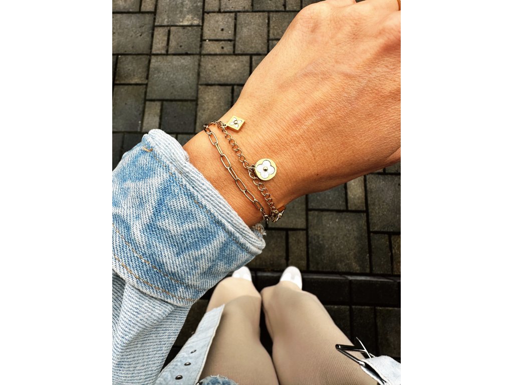 Elegantný dvojitý náramok z chirurgickej ocele, dodajte svojmu outfitu šmrnc s týmto trendy náramkom z kvalitnej chirurgickej ocele v zlatom prevedení. Jemný dizajn s ikonickými príveskami vytvára harmonické spojenie luxusu a jednoduchosti. Tento nadčasový náramok predstavuje kombináciu moderného dizajnu a klasickej elegancie, vďaka čomu je ideálnym doplnkom pre každú príležitosť. Náramok má nastaviteľné zapínanie na karabínku. Starostlivo zabalený v elegantnej darčekovej krabičke, čo robí z neho ideálny darček na akúkoľvek príležitosť.