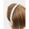Krásna biela čelenka zdobená bielymi perličkami a čírymi kamienkami prepletaná bielou stuhou, vyrobená je z plastovej čelenky potiahnutá bielou saténovou látkou. Čelenky sú jedným z najžiadanejších módnych doplnkov.