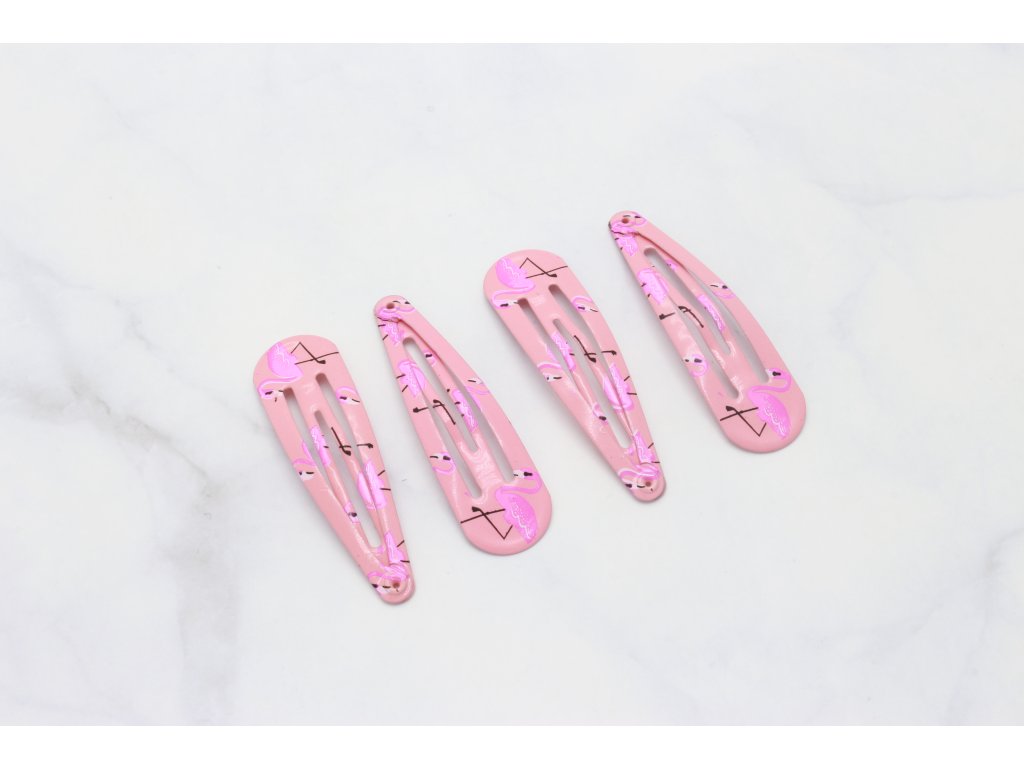 Detské sponky do vlasov pukačky v ružovej farbe s potlačou ružové plameniaky, potešia najmä malé parádnice. Pukačky sú pevné, ideálne na skrotenie neposlušných vláskov.
