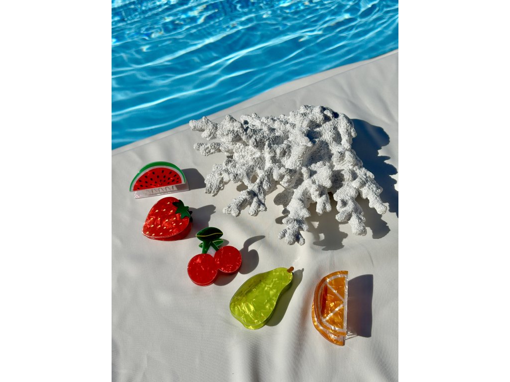 Dodaj svojim vlasom šťavnatý nádych leta! Naše farebné štipce do vlasov v tvare ovocia sú dokonalým spojením hravosti, trendového dizajnu a praktickosti. Vyrobené z kvalitného lesklého plastu, pevne držia účes počas horúcich dni pri bazéne, na pláži či v meste.