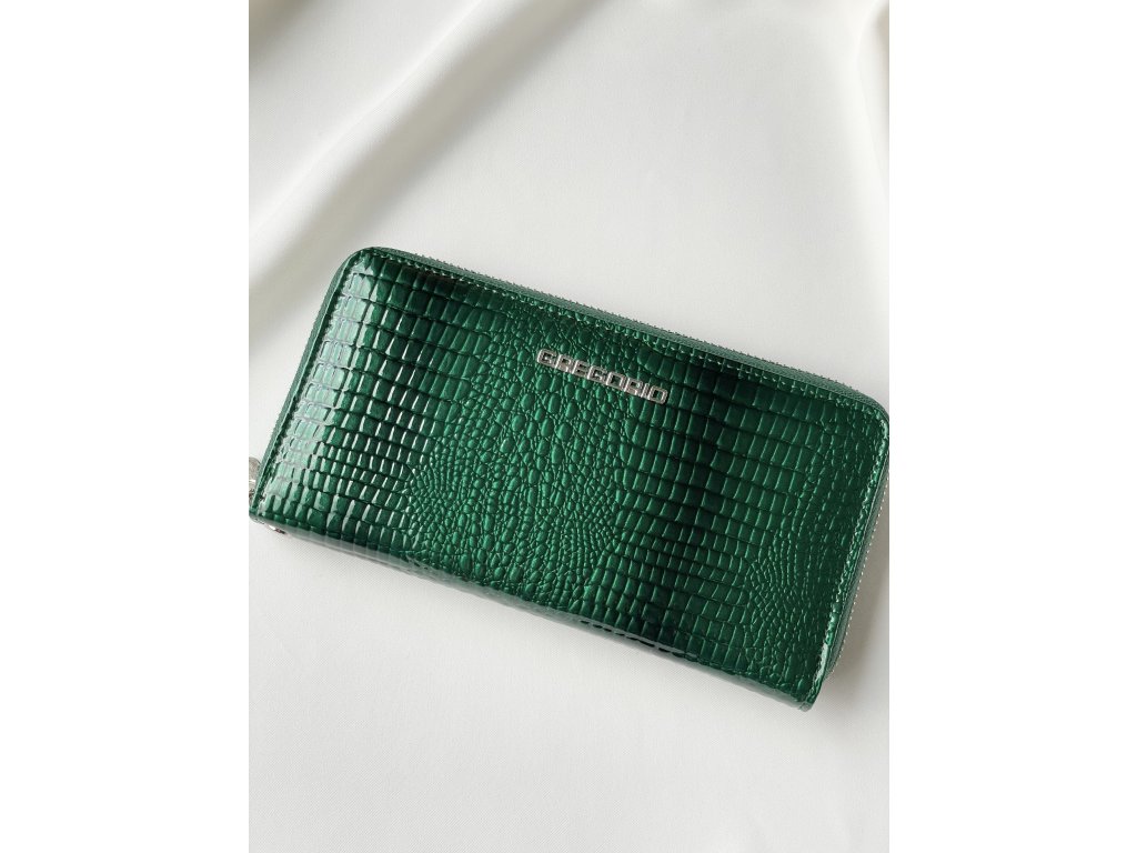 Uchovávajte svoje financie štýlovo v krásnej lakovanej peňaženke z pravej kože v smaragdovej farbe so štruktúrou a strieborným logom GREGORIO. Peňaženka je priestranná a priehľadná so zapínanie na zips.